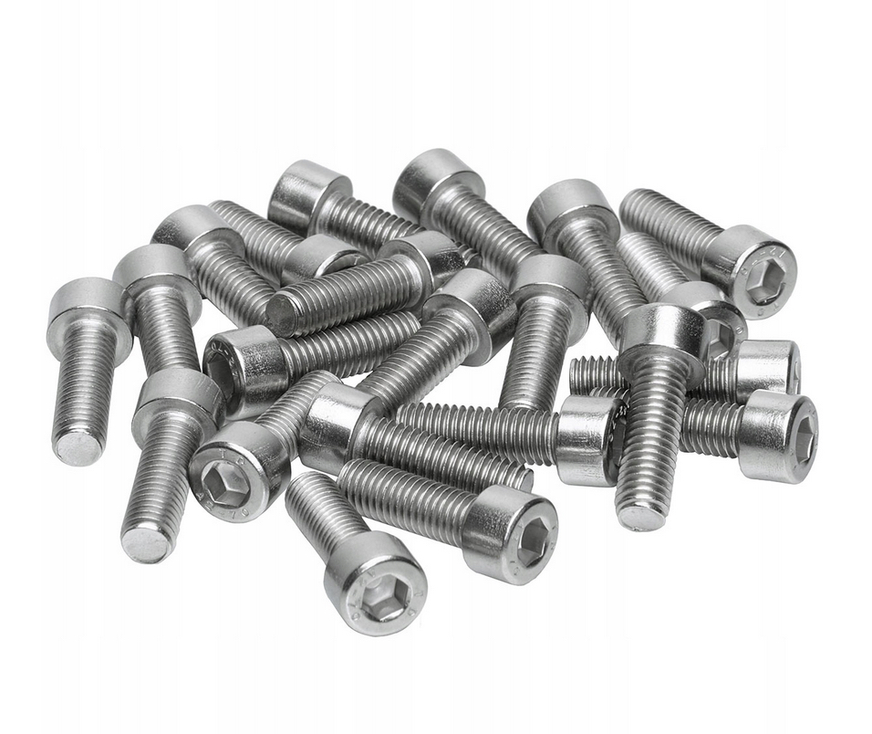 Sada imbusových skrutiek M8x25 vyrobených z nehrdzavejúcej ocele.