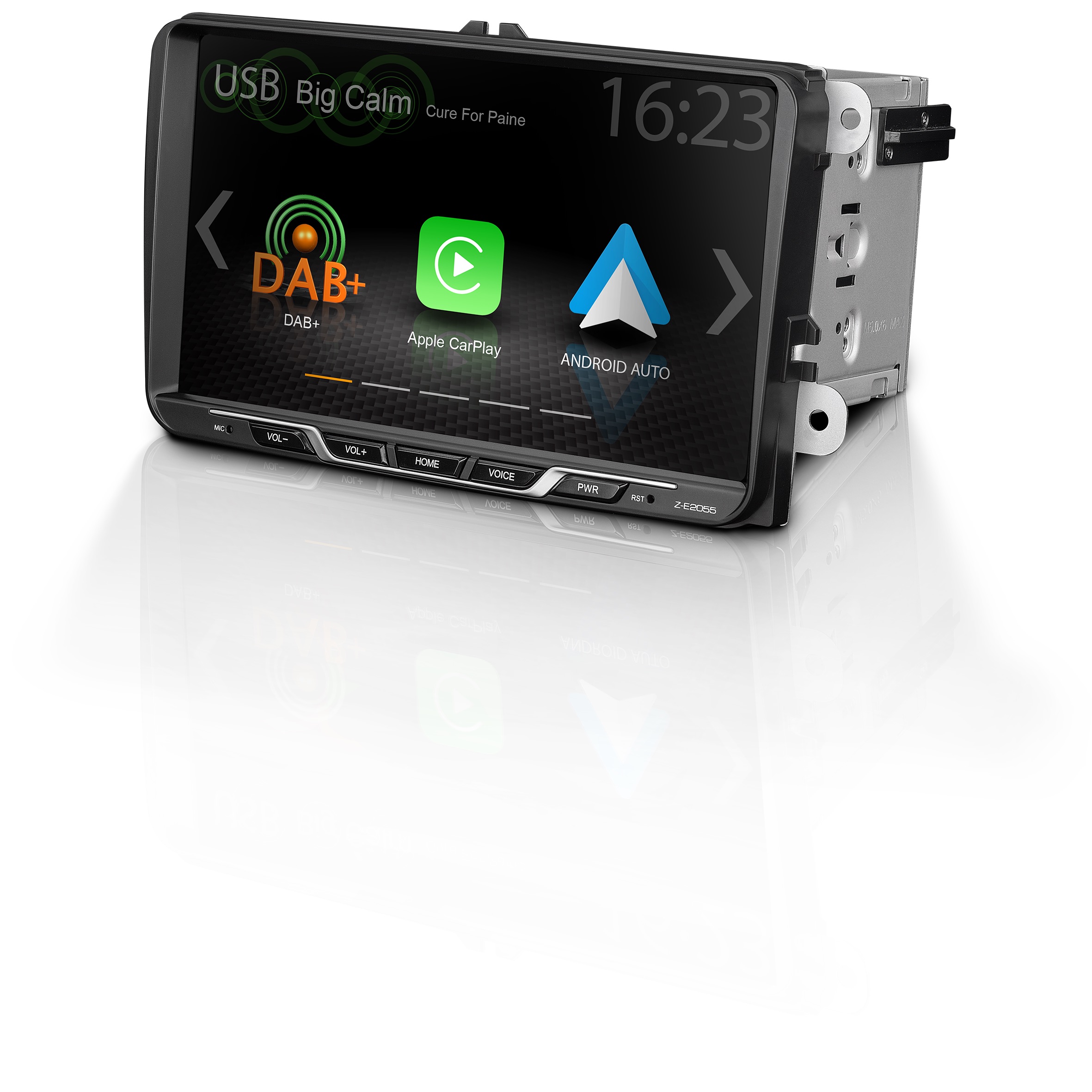 Inovatívny infotainer pre vozy z koncernu VW - Z-E2055 je E> GO najnovšej generácie. Vďaka prispôsobenému čelnému panelu zapadne Z-E2055 skvele do všetkých kompatibilných modelov Volkswagen. Vďaka prepojeniu s elektronikou vozidla prostredníctvom zbernice CAN sú podporované aj komfortné funkcie, ako MFA / MFA +, multifunkčný volant alebo indikácia systémov OPS a Climatronic.