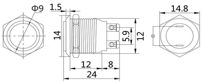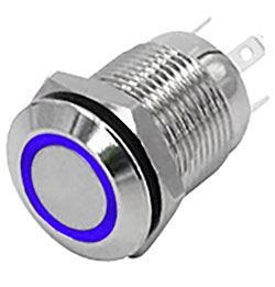 do otvoru 12mm, 1× kontakt 250V/2A, LED presvetlenie 6–24V po obvode tlačidla so samostatným prívodom, antivandal, krytie IP44