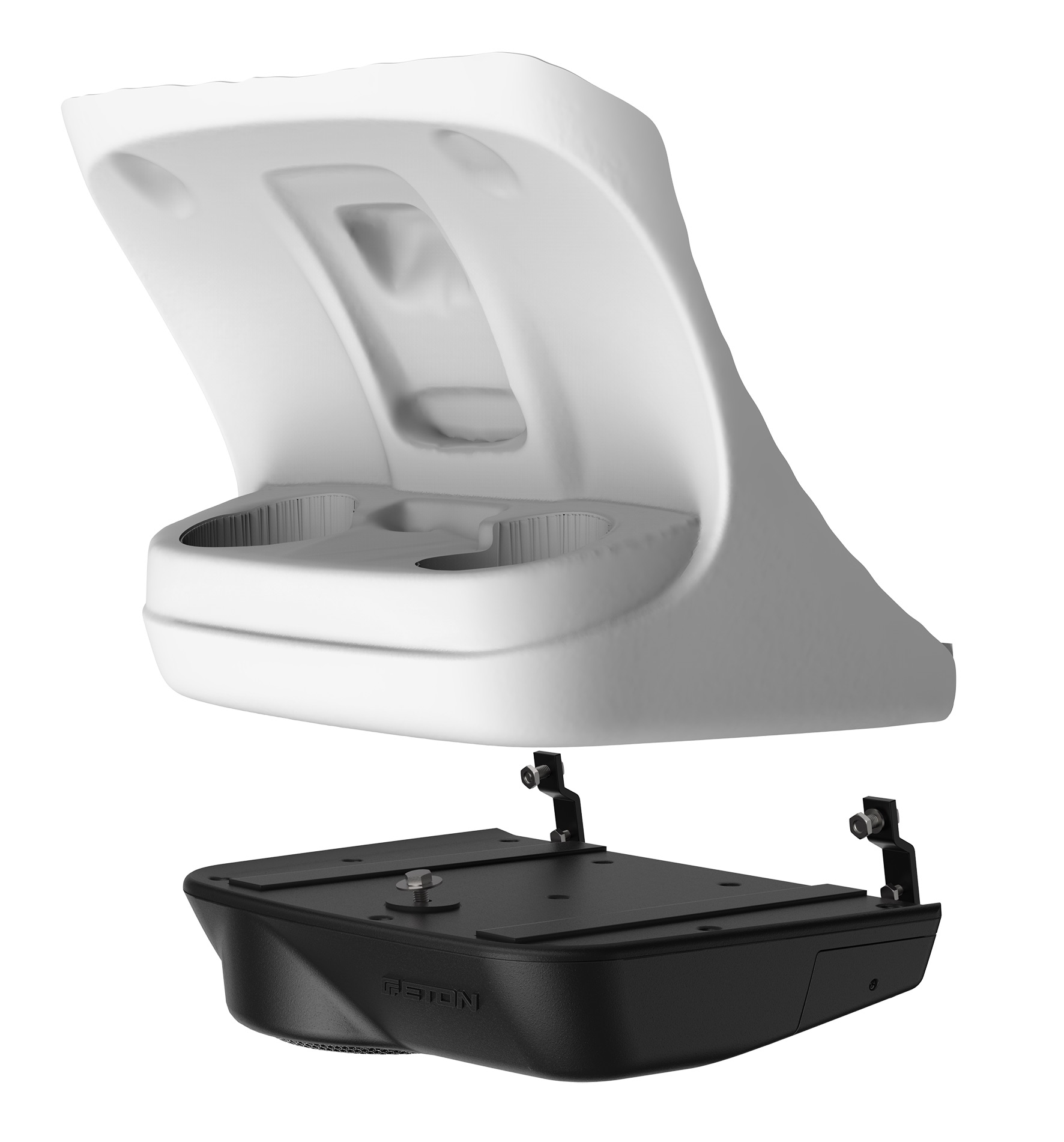Aktívny subwoofer má novo vyvinutý patentovaný kryt z tlakovo liateho hliníka. Špeciálne pevné hliníkové držiaky umožňujú jednoduchú montáž a demontáž basového boxu.