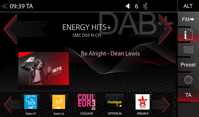 Dvojitý DAB + tuner s dynamickým zoznamom staníc, sledovaním služby DAB <> FM a DAB <> DAB, MOT slideshow a DLS text