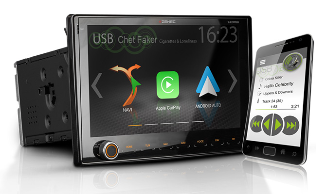 Z-E3766 umožňuje jednoduché a úplne bezpečné používanie smartfónu vo vozidle. Pomocou USB pripojíte telefón priamo k infotaineru - Z-E3766 je certifikovaný pre technológie Apple CarPlay a Google Android AUTOTECH. Telefonovanie, vyhľadávanie cieľov v Google Maps alebo Apple Maps, prehrávanie hudby, posielanie a prijímanie správ - to všetko v maximálne praktickom prevedení s dvoma základnými možnosťami ovládania: pomocou dotykového displeja, alebo s využitím hlasových asistentov Apple Siri či Google. Integrovaný dvojitý DAB + tuner nadchne všetkých, ktorí radi počúvajú rádio na cestách, svojím čistým príjmom digitálneho signálu a dynamickým zoznamom staníc. Napriek tomu však dvojitý tuner mieria svojimi komfortnými DAB funkciami ešte vyššie: MOT Slideshow, DLS text a sledovanie služby DAB <> FM / DAB <> DAB. Vysoko citlivý FM RDS tuner zaisťuje kvalitný príjem klasických FM staníc v oblastiach, kde ešte nemá vysielaciu sieť DAB + dostatočné pokrytie. Z-E3766 podporuje prehrávanie všetkých moderných audio a video formátov z pamäťových zariadení pripojených k portu USB 2.0. Čo je veľmi dôležité a praktické: možno pripojiť a prostredníctvom Z-E3766 ovládať až tri kamerové systémy, a to v automatickom alebo manuálnom režime, s nastaviteľnými mriežkami a podporou zvuku z mikrofónu kamery.