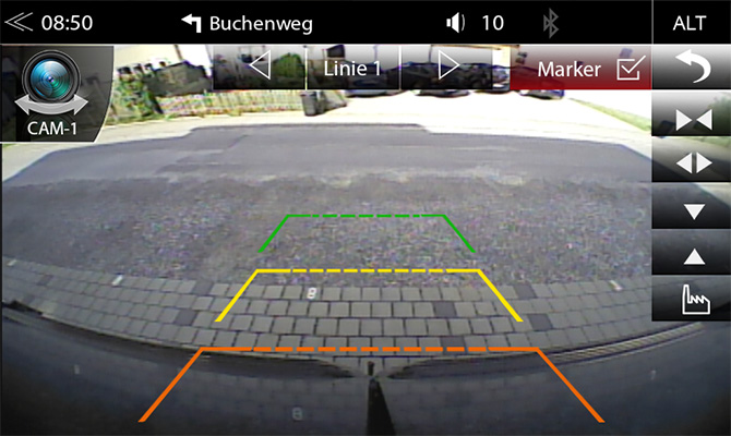 Ovládanie až troch kamerových systémov s automatickým prepínaním a nastaviteľnou mriežkou
