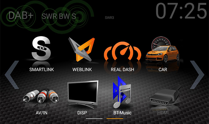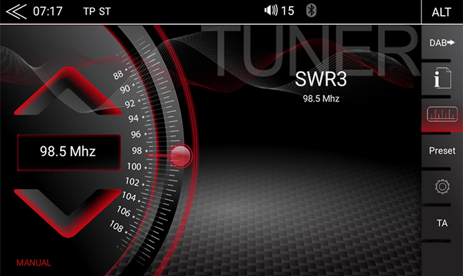 Citlivý kapacitný dotykový displej má sklenený povrch, ktorý umožňuje vysoké rozlíšenie 1024 x 600 pixelov pre ostrý, presný, brilantný obraz. DAB + tuner s funkciami Comfort Scan, MOT Slideshow, DLS text a sledovanie služby (DAB <> DAB) ponúka nerušený pôžitok z počúvania moderných digitálnych rádií, a to vrátane zobrazenia programových metadát. FM tuner zaisťuje čistý príjem rádia v oblastiach, kde má vysielanie DAB len nízke alebo nedostatočné pokrytie.