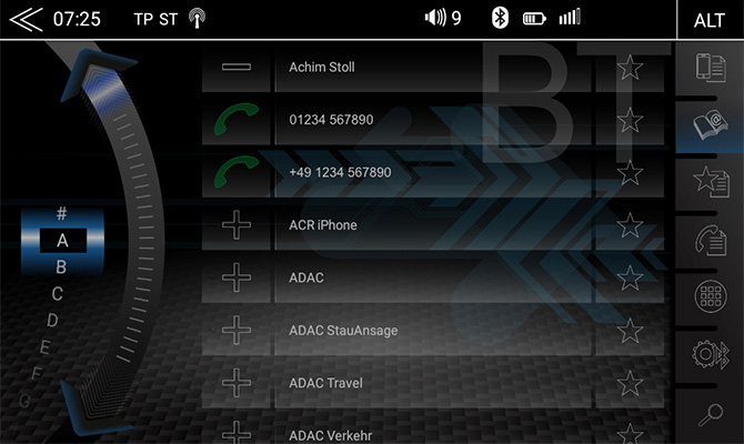 Moderný Bluetooth modul (verzia 4.1) prináša široké možnosti pre pohodlné telefonovanie s vysokou kvalitou zvuku. Podporuje import až 1 000 kontaktov z telefónu, rýchly prístup k obľúbeným kontaktom, vyhľadávanie podľa mena a priezviska a zobrazenie informácií o skladbách počas streamovania hudby cez technológiu A2DP.
