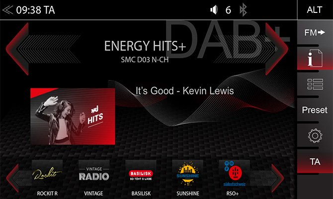 Moderný tuner DAB+ vás zaujme predovšetkým vynikajúcim príjmom a ponúka nevyhnutné komfortné funkcie, ako je sledovanie služby DAB<>DAB, MOT Slideshow, DLS text, Comfort Scan a zobrazovanie dát aktuálneho rádiového vysielania.