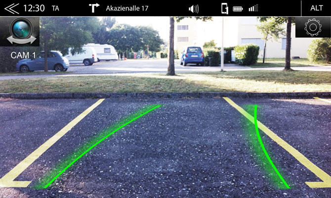 • ovládanie až dvoch kamerových systémov s funkciou automatického prepínania a dynamickými alebo nastaviteľnými pomocnými líniami