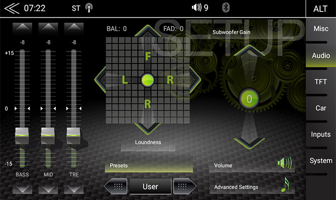 • grafický 3pásmový ekvalizér so 7 prednastavenými konfiguráciami EQ