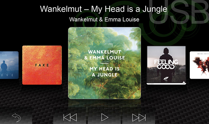Dva USB 2.0 porty umožňujú prehrávať audiovizuálne súbory z externých zariadení alebo pripojeného smartfónu. Kompatibilita s modernými formátmi súborov zahŕňa aj nové formáty s vysokým rozlíšením, ako je FLAC a MKV 1080p.