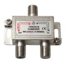 Zlučovač/rozbočovač vybavený F-konektormi slúži na zlúčenie TV (0-860Mhz) a satelitných (950-2400Mhz) signálov.