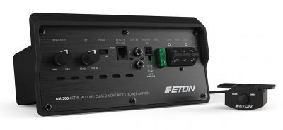 ETON AM300 je 1kanálový zosilňovač triedy D pre aktívne rozšírenie ETON RES 10 P na RES 10 A, rovnako ako zosilňovacie modul pre subwoofery vlastnej výroby. Disponuje 300 W RMS pri 4 Ohm, rovnako ako funkciami Hi a lo- level input, remote input, a nastaviteľnou citlivosťou s LPF filtrom. To všetko pri extrémne kompaktnej veľkosti! Rozšírenie RES 10 P na RES 10 A prebieha pomocou systému Plug & Play.