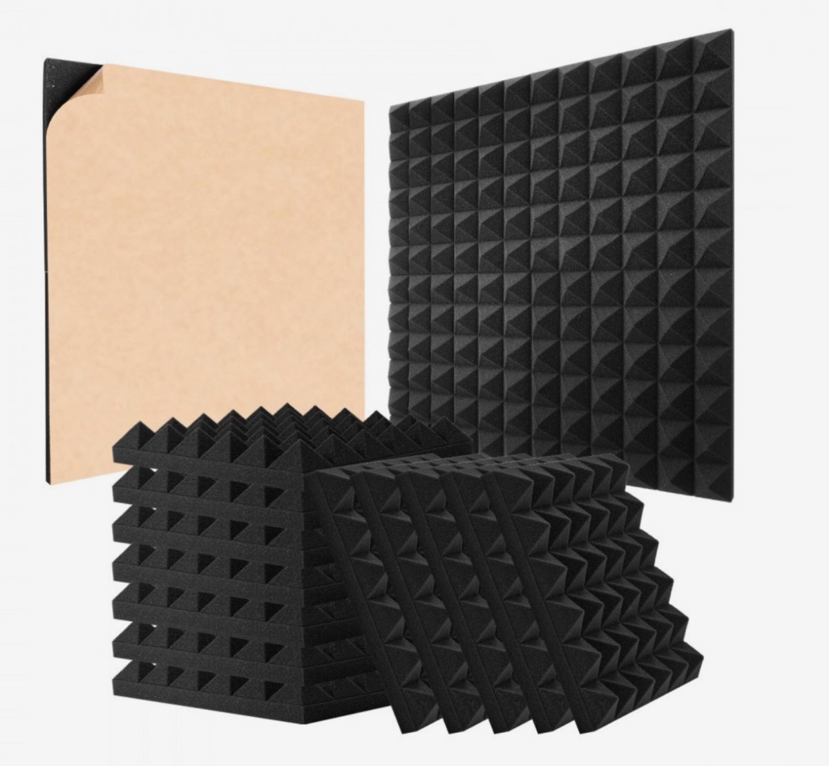 Samolepiaci akustický panel s pyramídovou štruktúrou určený na zlepšenie akustiky miestností.