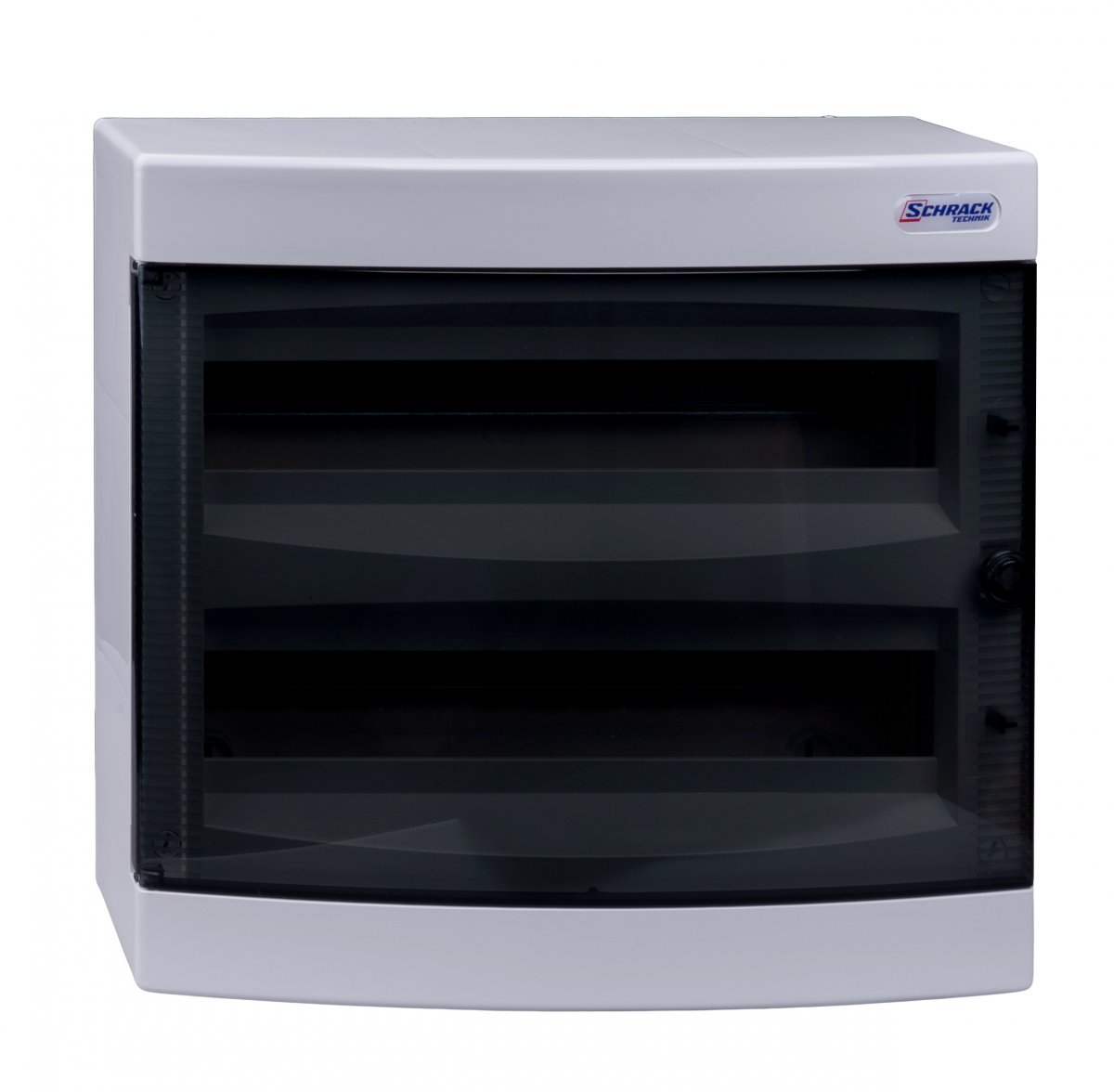 •Rozvodnica pre prisadenú nástennú montáž, vhodná do bytov a domov, vyhotovená z ABS s transparentnými dverami