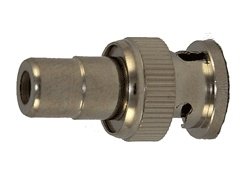 BNC zastrčka prechodom na RCA samicu. (BNC-M/RCA-F), použitie: vysielačky, kamerové systémy.