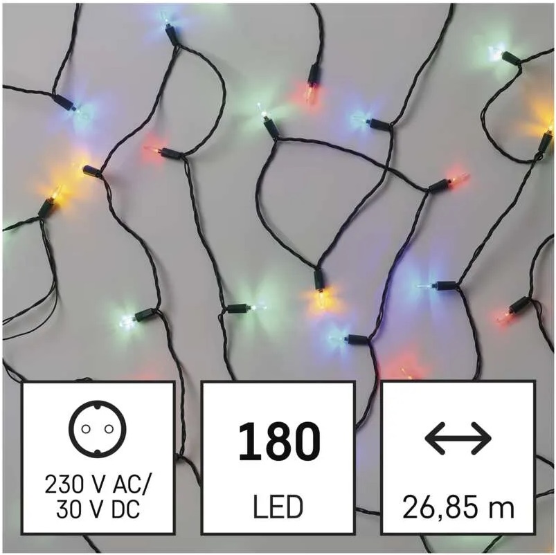 LED vianočná reťaz – tradičná, 26,85 m, vonkajšia aj vnútorná, multicolor