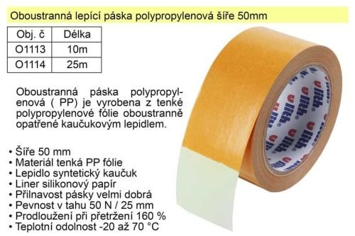 Lepiaca páska dvojstranná polypropylénová 50mmx10m    20329