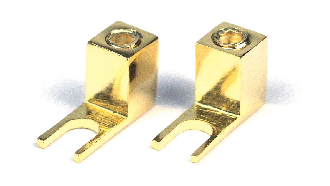 pod svorky skrutkami M5 a pre prierez kábla od 1-10mm2 prierezu. Balené v pár. Rýchle a stabilné spoje pre reprodutorové výstupi na zosilňovači, dalšia výhoda je rozoberatelnosť (prítlačné skrutky).