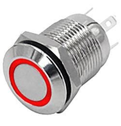 Tlačidlo OFF-(ON) 12mm, 250V/2A, červené presvetlenie 12V