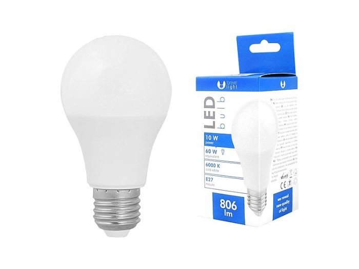 Žiarovka LED A60 E27 studená biela 230V/10W    83008
