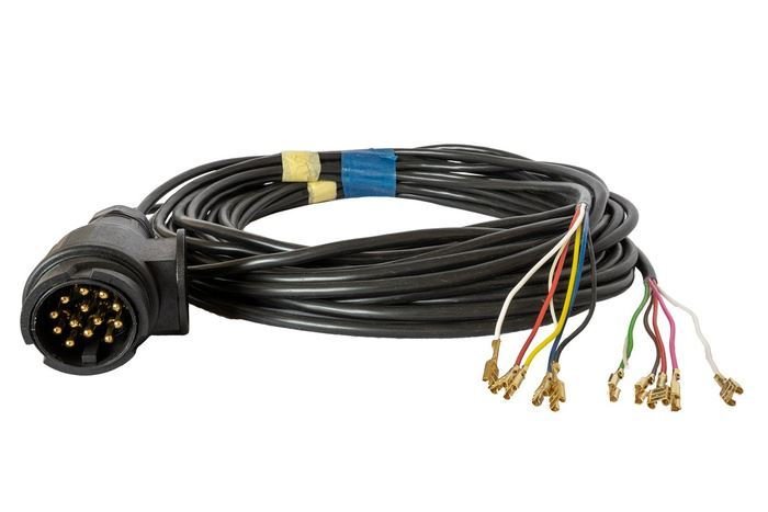 Elektrický zväzok pre príves s 13 kolíkovou zástrčkou. Odolná inštalácia, ktorá bude ideálna pre váš príves. Dĺžka kábla je 7 metrov a je určený pre ťažké prívesy.