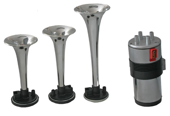 3-trubková fanfára poháňaná vzduchovým kompresorom dodávaným v sade. Hlavnou charakteristikou týchto houkaček Stebel je zrýchlená rýchlosť zvuku (čas medzi spustením sirény a skutočným začiatkom zvuku). Navyše má tento model jeden z najefektívnejších pomerov veľkosť-výkon na trhu. Je k dispozícii s kovovými (chrómovaný vzhľad) húkačkami.