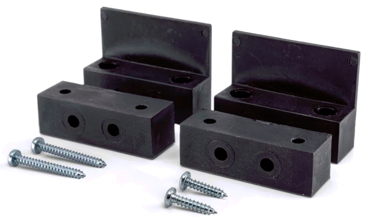 Pri upevnení bezdrôtových magnetických kontaktov na klapky garáže pomôžu montážne adaptéry prekonať veľké vzdialenosti. Zjednodušujú upevnenie pri širokých tesneniach dverí a zabezpečujú optimálne vyrovnanie vysielacej antény k centrále. Vďaka tomu je pri veľkých vozidlách a zložitých vysielacích podmienkach vždy zabezpečený optimálny príjem. Pri montáži bezdrôtových magnetických kontaktov na garáž vozidla je potrebné rátať s použitím kompletného setu dvoch montážnych adaptérov.
