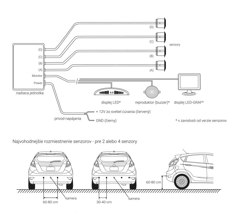 Parkovací asistent je zariadenie, ktoré podporuje parkovanie a cúvanie vozidla. Pracuje na princípe sonar - vyžaruje ultrazvukové vlny, ktoré, keď sa odrážajú od prekážky, umožňujú určiť vzdialenosť medzi vozidlom a prekážkou. Počas cúvania prístroj správne rozpozná prekážky v dráhe vozidla a upozorní vodiča signalizáciou zvukom. Bzučiak môže pracovať v 3 režimoch zvuku: vysoký, nízky a úplne stlmený. Zmena režimu prepínačom na kryte. Súprava obsahuje: 4 senzory strieborné o 22mm Bzučiak - vydáva zvukové signály ECU Pílový otvor na vŕtanie otvorov v nárazníku Návod na montáž úplná špecifikácia: Rozsah / citlivosť prevádzky 0-2,5m Napájanie 12V Prevádzková frekvencia 40KHz Pracovná teplota -30 ° C - +70 ° C