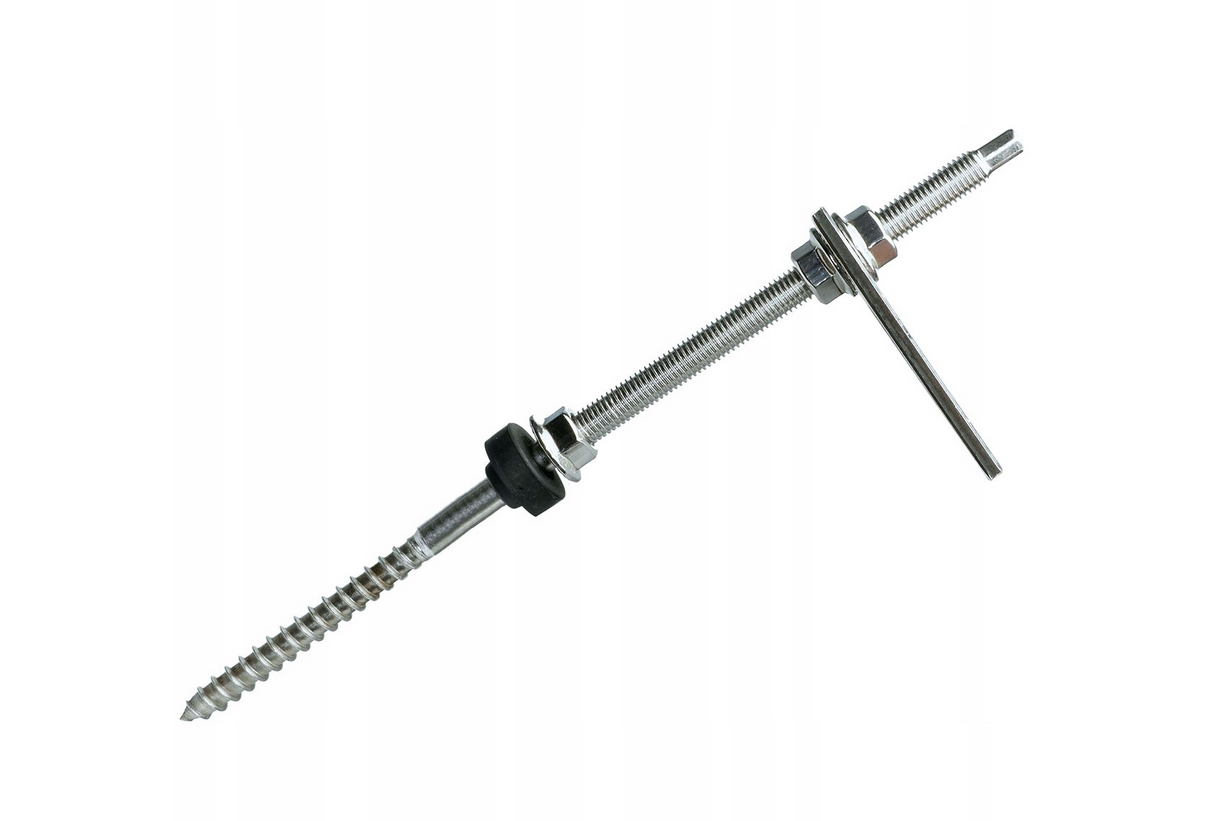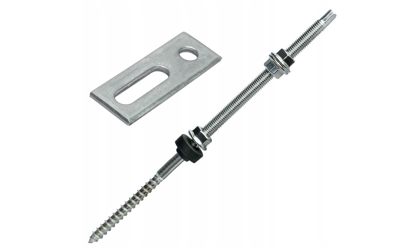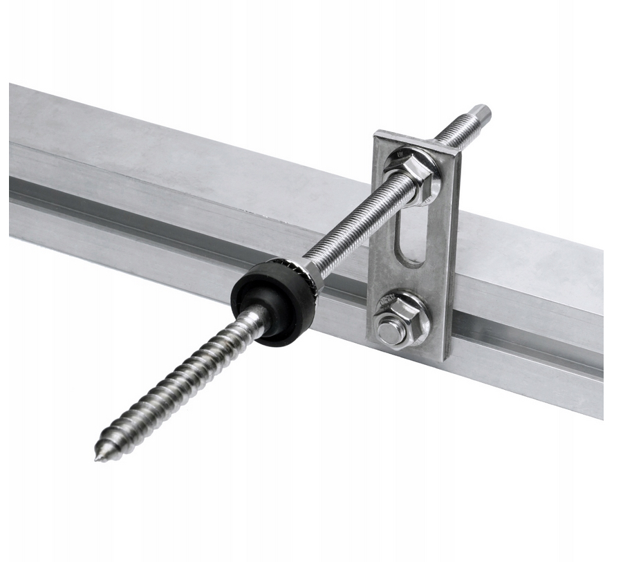 Skrutka určená na montáž fotovoltaického systému, je vybavená prírubovými maticami m10, tesnením a montážnym adaptérom.