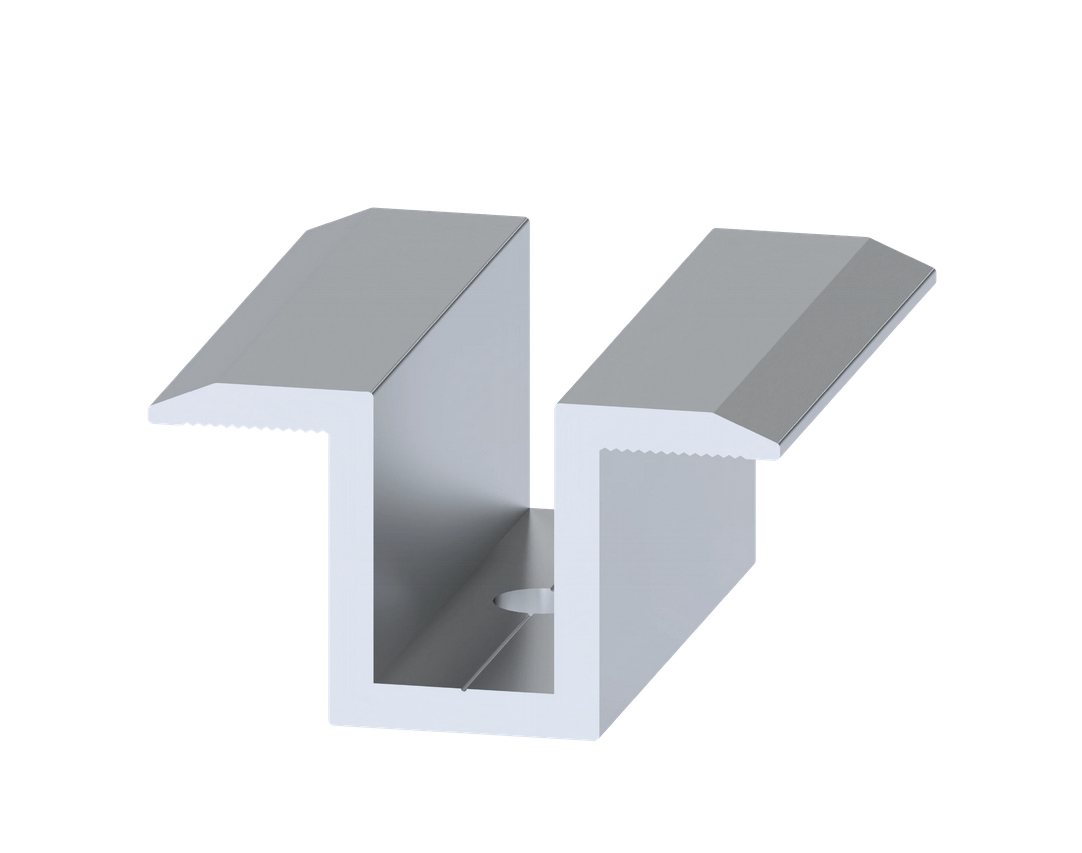 Hliníková stredová svorka pre pripevnenie mono a polykryštalických fotovoltaických (solárnych) panelov na šikmé a ploché strechy ako aj samostatne stojace systémy.