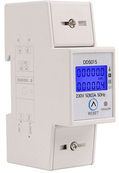 Jednofázový elektromer zobrazujúci celkovo spotrebovanú energiu a energiu spotrebovanú od posledného resetu.