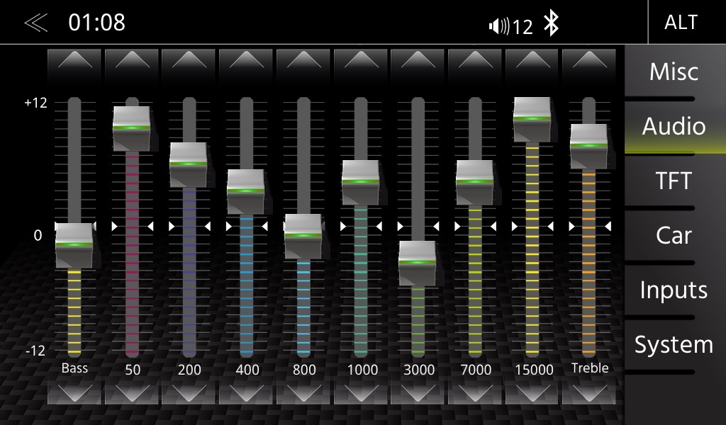 S 10pásmovým grafickým ekvalizérom vyladíte zvuk presne podľa vlastností svojho vozidla alebo podľa svojich preferencií. K optimalizácii prehrávania môžete použiť aj niektorý z prednastavených profilov ekvalizéra.