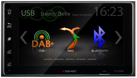 Z-N328 je 2-DIN Smartlink direct infotainer najnovšej generácie s kapacitným dotykovým displejom 6,2 / 15,7 cm a dotykovými tlačidlami na prednej strane zariadenia. Ovládanie infotaineru Z-N328 je úplne intuitívne. Čistý digitálny príjem integrovaného DAB + tunera je skutočne pôsobivý, ale Z-N328 boduje aj ďalšími palubnými funkciami: komfortný skenovanie, MOT Slideshow, DLS text, ale aj sledovanie služby DAB <> DAB a DAB <> FM. Vysoko citlivý FM RDS tuner zaisťuje kvalitný príjem konvenčných FM staníc v oblastiach, kde nie je dostupná digitálna sieť DAB +.