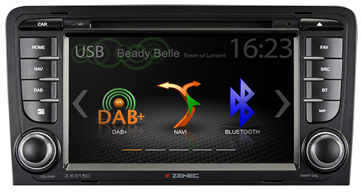 Z-E 3150 E> GO radu Essential 2. Vďaka svojej prednej časti sa model Z-E3150 dokonale integruje do kompatibilných modelov Audi A3. Pripojené k elektronike vozidla cez zbernicu CAN, sú podporované komfortné funkcie ako FIS, multifunkčný volant alebo displeje OPS a ECON-Climatronic.