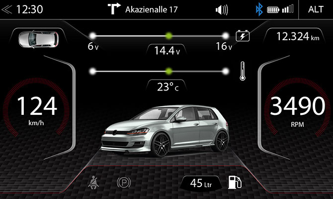 Vďaka svojej prednej časti sa model Z-E2050 výborne integruje do kompatibilných modelov Volkswagen. Pripojené k elektronike vozidla cez zbernicu CAN, sú podporované komfortné funkcie ako MFA / MFA +, multifunkčný volant alebo displeje OPS a Climatronic.