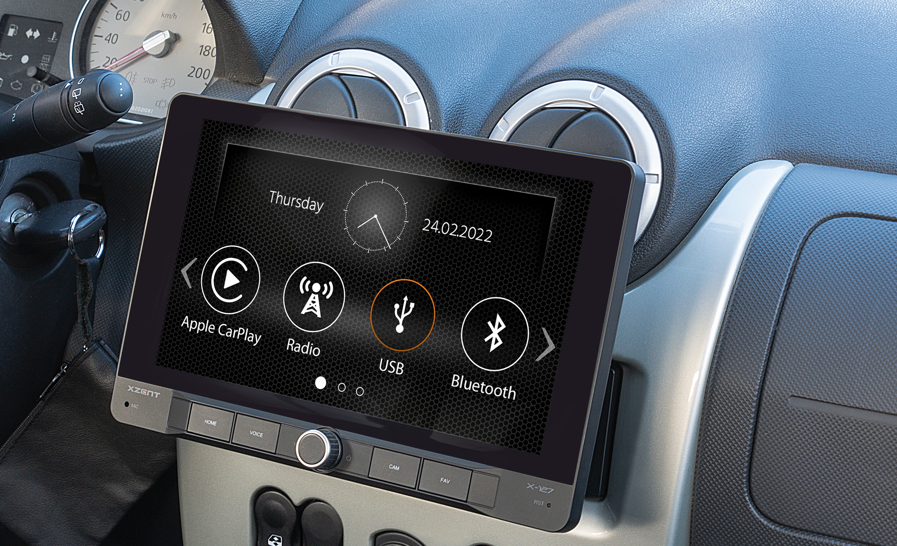 XZENT X-127 je určený pre vozidlá s montážnym slotom 1-DIN. Displej o veľkosti 9“ sa dokonale zmestí do väčšiny vozidiel – bez toho, aby jednotka zakrývala prvky a tlačidlá dôležité pre bezpečnosť. Viacfarebné podsvietenie senzorových tlačidiel X-127 umožňuje farebné zladenie s akýmkoľvek kokpitom.
