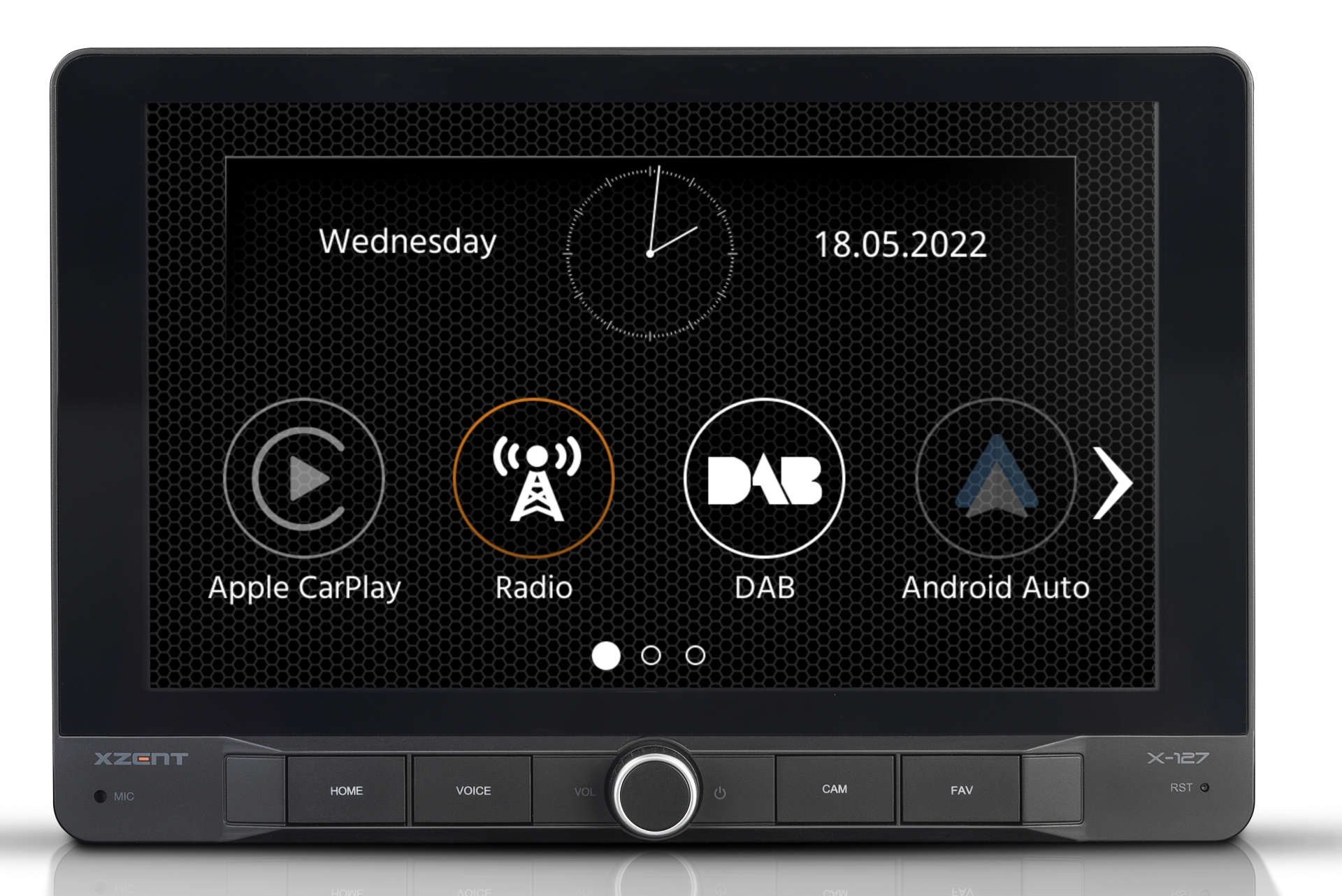 Model X-127 je vybavený tunerom DAB+, ktorý umožňuje pohodový mobilný príjem digitálneho rádia v najvyššej kvalite. Moderný modul DAB+ boduje jednoduchou obsluhou a širokou ponukou funkcií: DAB-DAB Service Following, DLS text, MOT slideshow a Comfort Scan. Okrem tunera FM RDS má X-127 dva porty USB 2.0, ktoré je možné použiť na prehrávanie audio a video súborov a na pripojenie chytrých telefónov Apple iOS a Android.