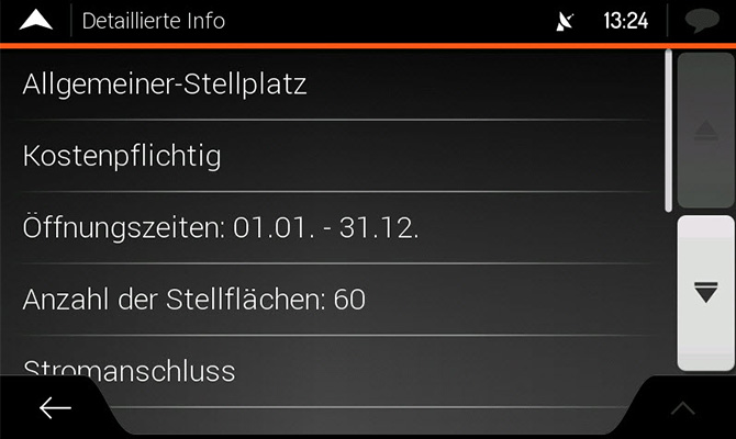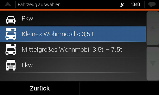 • Prednastavené profily obytného vozidla s doplňujúcimi údajmi o