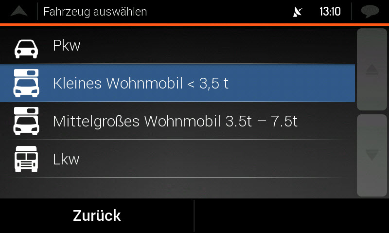 3D navigačný softvér pre obytné vozy s mapami 47 krajín: západná a východná Európa, Turecko, Ukrajina, Rusko a Bielorusko (na 16GB microSDHC karte) •