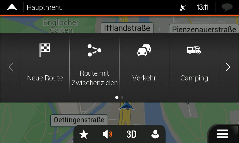 Jazda v jazdných pruhoch, režim tunela, automatický 3D zoom na križovatkách a kruhových objazdoch, inteligentný výpočet alternatívnych trás atď.