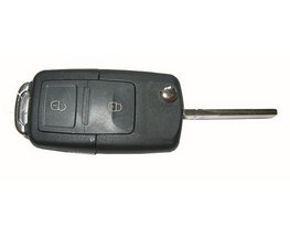 Náhradný obal vystrelovacieho kľúča pre vozidlá VW s 2-tlačidlovým ovládačom (bez elektroniky a čipu imobilizéru). Do kľúča je potrebné vložiť z pôvodného kľúča elektroniku diaľkového ovládania a čip imobilizéru (transpondér), planžetu kľúča je potrebné nechať vyfrézovať podľa tvaru originálneho kľúča.