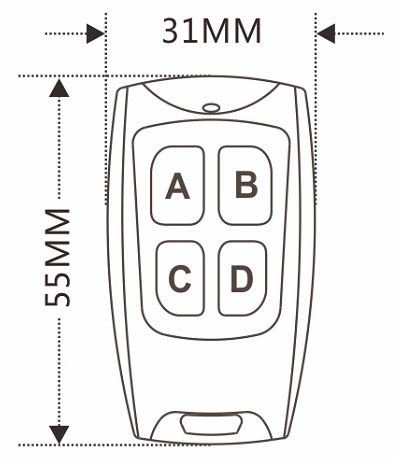 Vysielač diaľkového ovládania s bezdrôtovým prenosom 433,92MHz, Pevný kód, kódovanie EV1527, napájanie: 2 × CR2016, Jednoduché párovanie s prijímačmi T335-T335B. Rozmery: 55 × 31 × 10mm