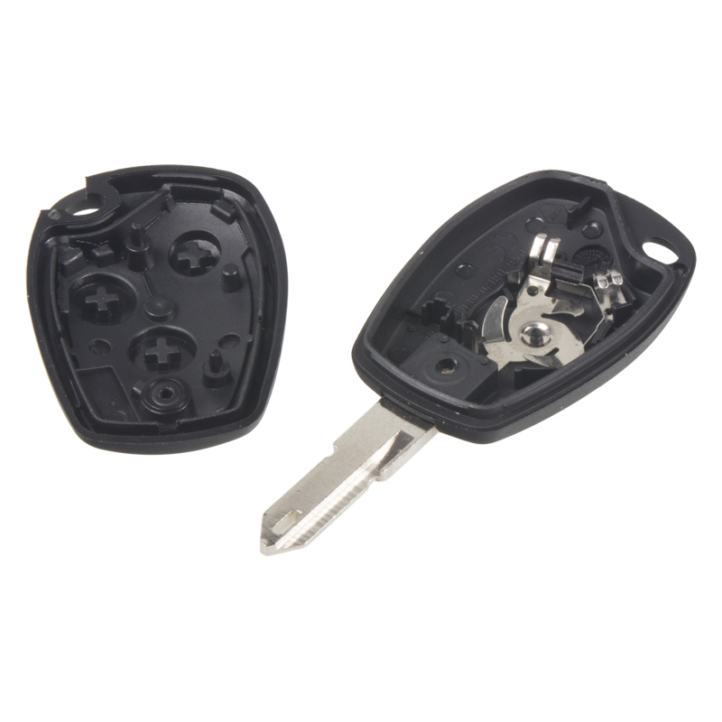 Náhradný obal kľúča pre vozidlá Renault s 3-tlačidlovým ovládačom (bez elektroniky a čipu imobilizéra). Do kľúča je nutné vložiť z pôvodného kľúča elektroniku diaľkového ovládania a čip imobilizéra (transpondér), planžetu kľúča treba nechať vyfrézovať podľa tvaru originálneho kľúča.