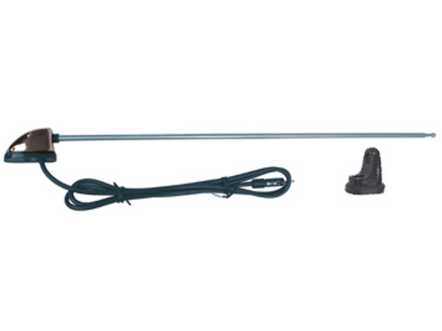 chrómová univerzálna anténa pre osobné alebo nákladné auto s extra montážnymi prvkami.