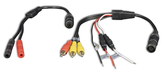 Káblový adaptér pre pripojenie kamery ZENEC (ZE-RVSC200-MK2, ZE-RVSC200 + ZE-RVSC175) a monitora/navigačného prijímača (s Cinch vstupmi pre parkovacie kamery) na predinštalovaný káblový systém DOMETIC-6pin so skrutkovými konektormi vo vozidle.