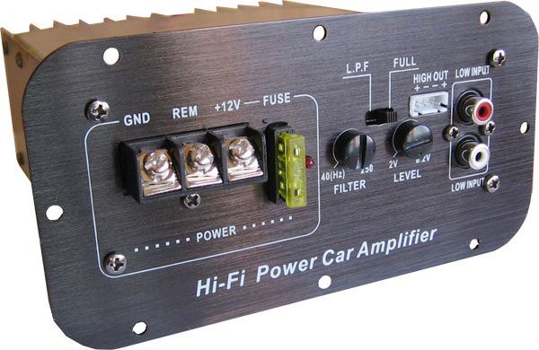 Zosilňovač s režimom v plnom frekvenčnom rozsahu alebo s regulovanou dolnej prepustí pre subwoofer.