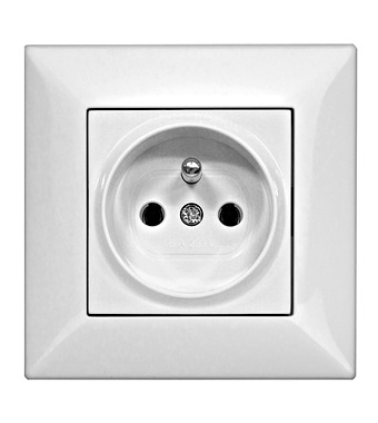 Kompletná zásuvka STN s rámikom, biela, pružinové svorky