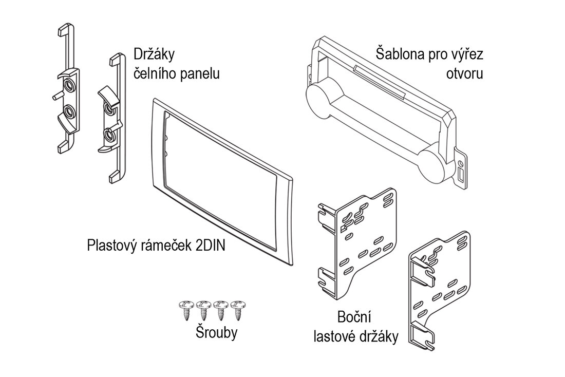 Plastový rámček pre inštaláciu 2DIN autorádia alebo navigácie.