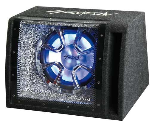 1x10 bandpass woofer s plexi, PP- lysovaná membrána, modré LED podsvietenie, 400 W, 4 Ohms