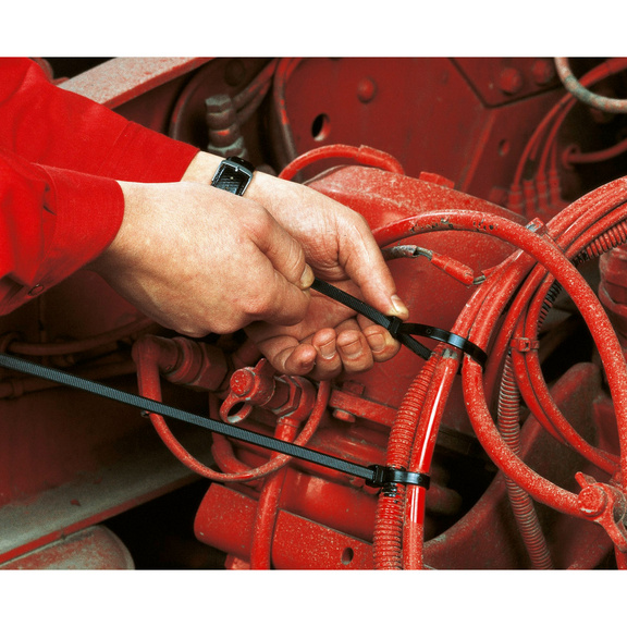 Na rýchle, bezproblémové a spoľahlivé zväzovanie káblov, káblových zväzkov, hadíc a pod.
