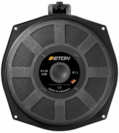 V rámci upgrade systémov pre BMW ponúka ETON pre rad systémov od výbavy HiFi a vyššie výmenu subwoofera pod sedačku. B150USB je vybavený výnimočne stabilné membránou, ktorá ponúka reprodukciu basov bez skreslenia. 50 mm veľká kmitacia cievka spolu s feritovým magnetom a tuhým košom umožňujú zaťaženie reproduktora až na 200 W.